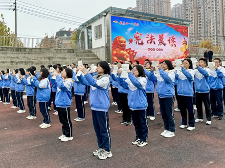 为进一步增强九一六师生对宪法的了解和认识,增强同学们崇尚宪法、遵守宪法、维护宪法权威的意识,我校高中部和初中部特举办了宪法日“宪法晨读”活动。